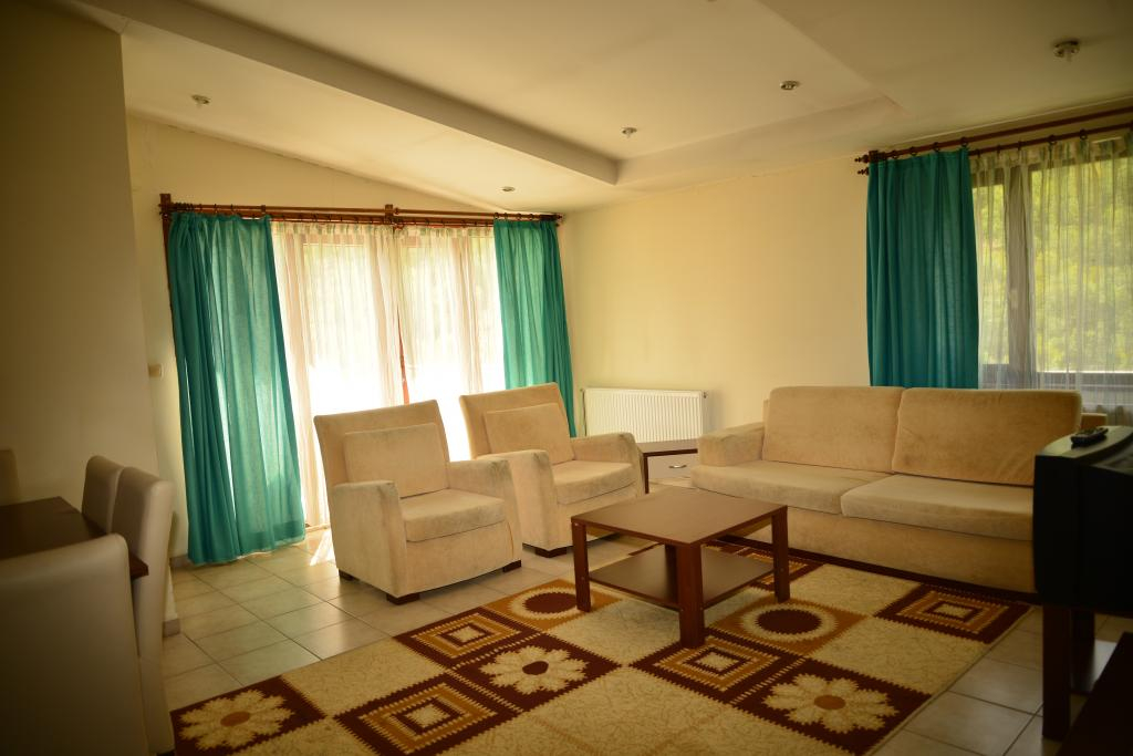 Dairelerde oturma alanı, yatak odası, mutfak ve banyo standarttır; LCD TV, Wi-Fi, elektrikli su ısıtıcısı, ocak, buzdolabı ve yemek masası gibi ekipmanlar bulunur. Tesis, termal su kullanımı ve sade-modern oda planıyla konforu günlük yaşama entegre eder. Kompleks içinde kadın-erkek ayrı alanlar, aile havuzları, spa/hamam/sauna, çocuk oyun alanları, sinema ve hobi aktiviteleriyle sosyal yaşam desteklenir. (Canlı müzik ve aktivite günleri dönemsel olarak düzenlenebilir